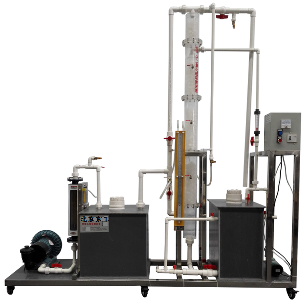 有機玻璃三段填料塔、液體緩沖箱、氣體緩沖箱、進出口風管、渦輪氣泵、噴淋系統(tǒng)、加液泵、氣體流量計、液體流量計、 SO 2 氣體鋼瓶及減壓器(用戶自備)、 SO 2 氣體流量計、電控箱、管道閥門、不銹鋼支架。