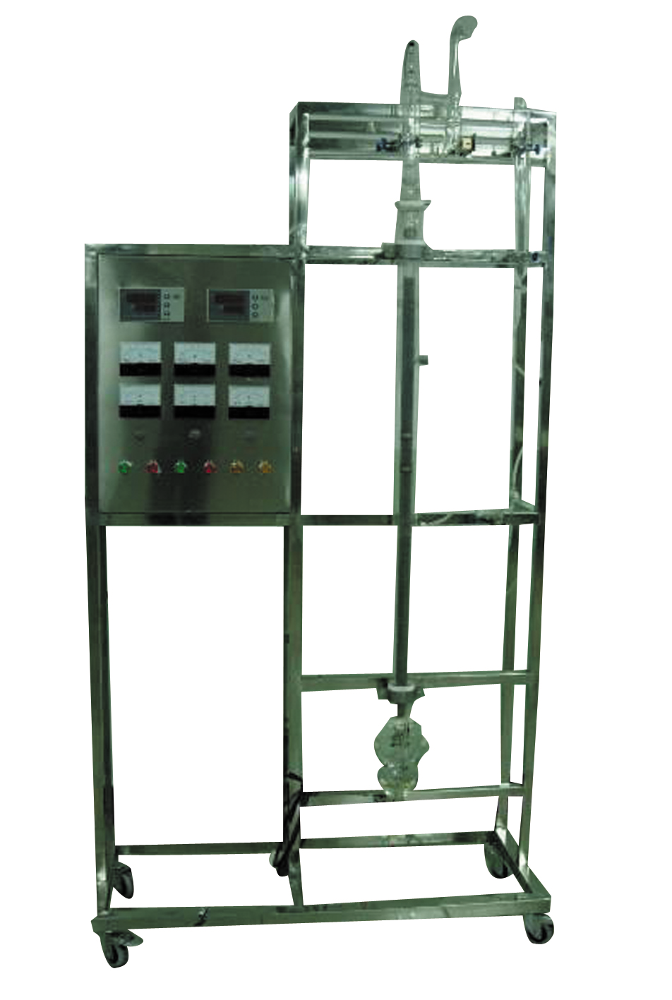 玻璃精餾塔、冷凝器、再沸器、預(yù)熱器、蠕動泵、溫度控制儀、溫度顯示儀、流量計、不銹鋼框架、控制屏。