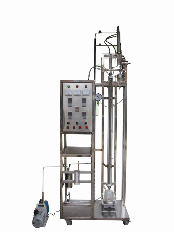 玻璃塔體(填料):φ 30 × 1400mm ,無(wú)側(cè)口,φ 3x 3 mm 不銹鋼θ環(huán)型填料;填料層高: 1200mm ;蒸餾釜容積: 500ml 。
