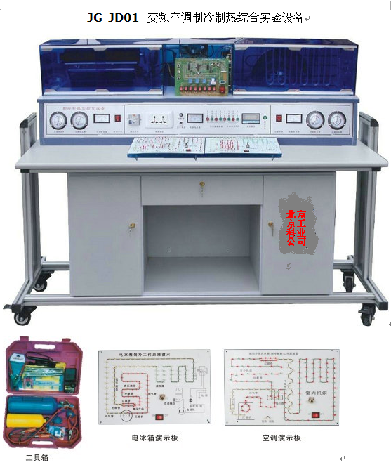 變頻空調(diào)制冷制熱綜合實(shí)驗(yàn)設(shè)備采用了變頻技術(shù),先將單相交流電源經(jīng)整流橋整流成 直流電,又經(jīng)三相逆變橋把直流電 “ 逆變 ” 成頻率任意可調(diào)的三相交流電,自動(dòng)控制 壓縮機(jī)的速度,達(dá)到節(jié)能的目的。另外新增加其它類型的空調(diào)、冰箱系統(tǒng)及電路十幾 個(gè)機(jī)種,有利于學(xué)生更全面地掌握制冷制熱技術(shù)。分體空調(diào)為立體結(jié)構(gòu),前面為仿真 室內(nèi)機(jī)組,后部為仿真室外機(jī)組,室內(nèi)機(jī)組改進(jìn)為真實(shí)空調(diào)組件,外套真空調(diào)全透明 外殼。冰箱方面也進(jìn)行了改進(jìn),前后格分開:前面為冷凍室,后面為電冰箱壓縮機(jī)、 工作室、加裝溫度調(diào)節(jié)器。 為了克服冰箱、空調(diào)溫度顯示的問題,產(chǎn)品又增加了教師故障演示軟件、 巡回檢測數(shù)碼溫度顯示系統(tǒng),可以很直觀地觀察制冷及制熱系統(tǒng)中各關(guān)鍵點(diǎn)的溫度。