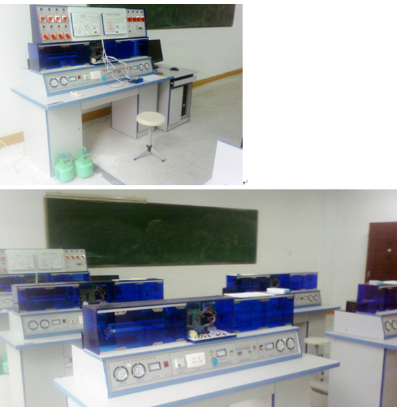 18 、將空調(diào)器、電冰箱、全方位解剖,同時(shí)還保證單獨(dú)進(jìn)行空調(diào)的制冷制熱、模式運(yùn)轉(zhuǎn)及電冰箱制冷運(yùn)行等實(shí)驗(yàn),使學(xué)生掌握冰箱、空調(diào)器的運(yùn)行原理,使用方法,故障原因及排除方法。