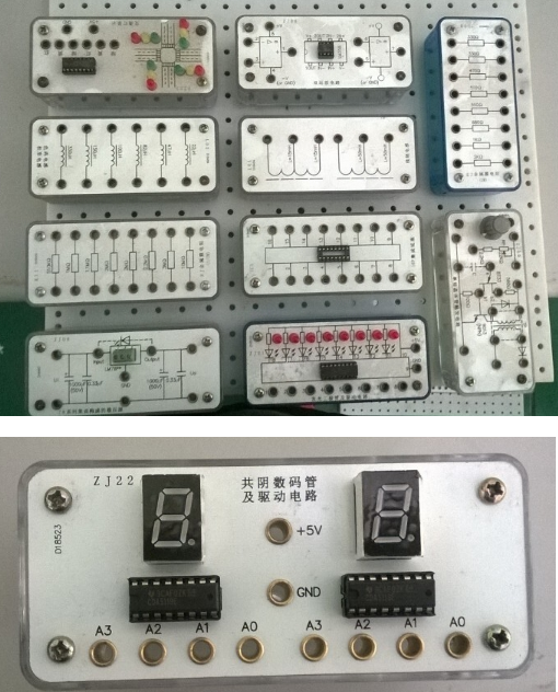 提供電阻器、電容器、電位器、電感器、脈沖變壓器、穩(wěn)壓二極管、雙向穩(wěn)壓管、整流二極管、場效應(yīng)管、單向晶閘管、雙向晶閘管、IGBT管、復(fù)位按鈕開關(guān)、鈕子開關(guān)、白熾燈、保險絲、共陰數(shù)碼管、集成穩(wěn)壓管、聲電傳感器、揚聲器、蜂鳴器、氣敏傳感器、元件插座、銅電阻溫度計、運放電路、繼電器驅(qū)動電路、單結(jié)晶體管觸發(fā)電路、功率放大集成電路、DC-DC集成變換器MC34063A、電機測速、十位邏輯電平輸出、單次脈沖源、編碼開關(guān)電路、撥碼盤、CP時鐘脈沖源等100種以上實訓(xùn)模塊。