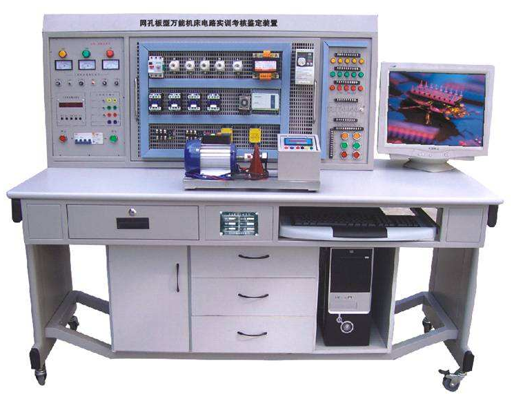 JGWK-88B網(wǎng)孔型萬能機(jī)床電路實訓(xùn)考核鑒定裝置,主要由實訓(xùn)屏、網(wǎng)孔板、實訓(xùn)元器件、實訓(xùn)桌組成。結(jié)構(gòu)合理、外觀新穎,元器件在網(wǎng)孔板上合理安裝、線路的合理布局,全部由學(xué)生自行完成,接近工業(yè)現(xiàn)場,有效培養(yǎng)學(xué)生實際操作技能。所配置的元器件能完成"工廠電氣控制"、"電機(jī)拖動"、"控制線路與技能訓(xùn)練"、"常用機(jī)床控制線路"、"PLC綜合實訓(xùn)"、"變頻調(diào)速"等課程的實訓(xùn)與考核,增加元器件能擴(kuò)展"電工技能實訓(xùn)"、"電工儀表與測量"等課程的實訓(xùn),其適合大中專院校、職校、技校實驗室的新建、擴(kuò)建或?qū)嶒炇业母聯(lián)Q代,也可作為電工考核的考核設(shè)備。