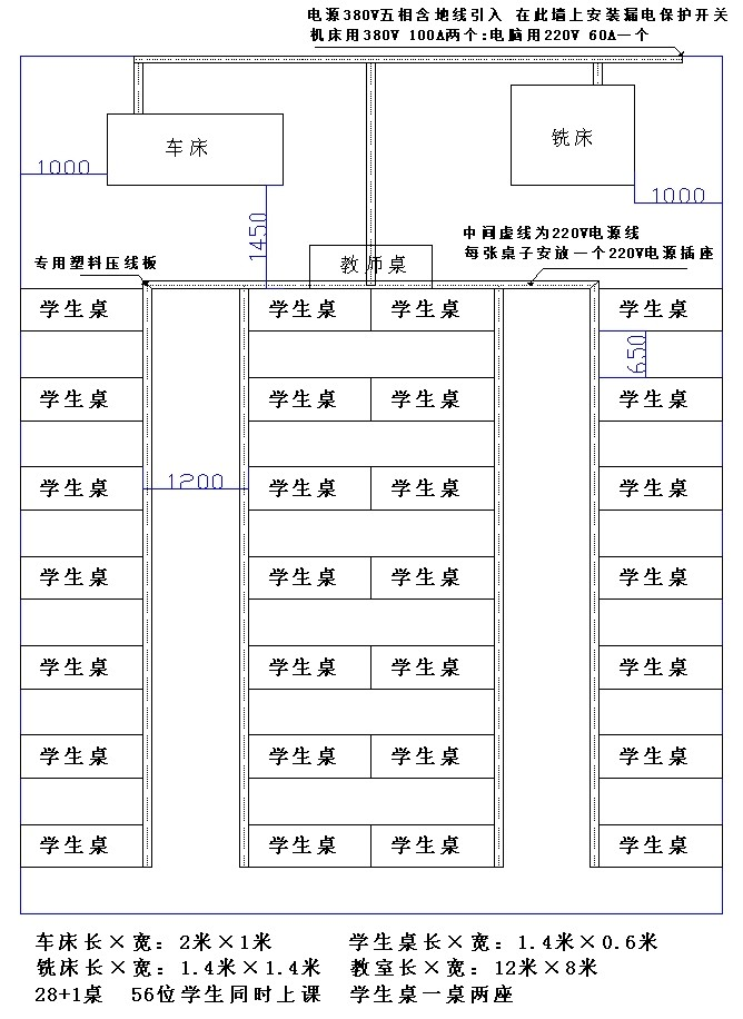 注:5、學校負責提供標準尺寸教室一間,并引入380V動力和220V普通電源。