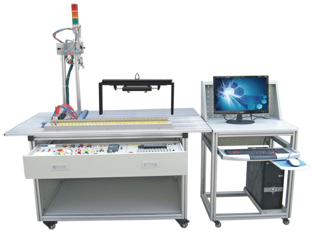 循環(huán)搬運自動控制實訓裝置(電腦學校自備)由鋁合金導(dǎo)軌式實訓臺、循環(huán)搬運自動控制機械機構(gòu)、電源模塊、PLC模塊、按鈕模塊及各種氣動和傳感器等組成,通過各種傳感器信號采集和反饋、PLC編程、多種氣缸和手指的位置控制,包括了無桿氣缸、旋轉(zhuǎn)氣動、氣動手指等氣動元件,實現(xiàn)物體循環(huán)搬運的自