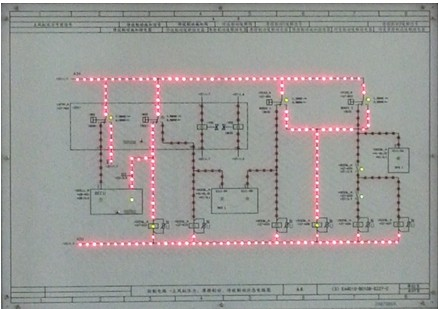 (三)動(dòng)態(tài),平臺(tái)上由LED組成的原理圖面板會(huì)根據(jù)當(dāng)前實(shí)際控制回路的動(dòng)作,動(dòng)態(tài)地反應(yīng)出電路狀態(tài)和邏輯關(guān)系,準(zhǔn)確的呈現(xiàn)電氣回路中電氣段有無(wú)電,繼電器線圈得失電、觸點(diǎn)的斷開(kāi)閉合及電氣段中電流的走向等狀態(tài)。