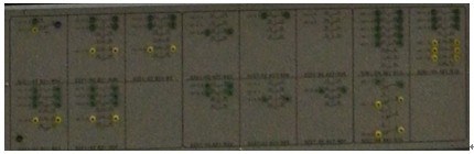 (五)系統(tǒng)中設(shè)計(jì)有一個(gè)獨(dú)立加鎖的開(kāi)關(guān)掛箱和多幅電路測(cè)試點(diǎn)面板。掛箱里面設(shè)置了幾十個(gè)通斷開(kāi)關(guān),每個(gè)通斷開(kāi)關(guān)對(duì)應(yīng)一個(gè)故障設(shè)置點(diǎn),開(kāi)關(guān)閉合表示線路通無(wú)故障,開(kāi)關(guān)斷開(kāi)表示線路斷有故障;電路測(cè)試點(diǎn)面板中,引出了列車電氣回路中主要繼電器的觸點(diǎn)測(cè)試點(diǎn),可供學(xué)生測(cè)試觸點(diǎn)通斷或有無(wú)電。如下圖所示,圖5-1 測(cè)試點(diǎn)面板。