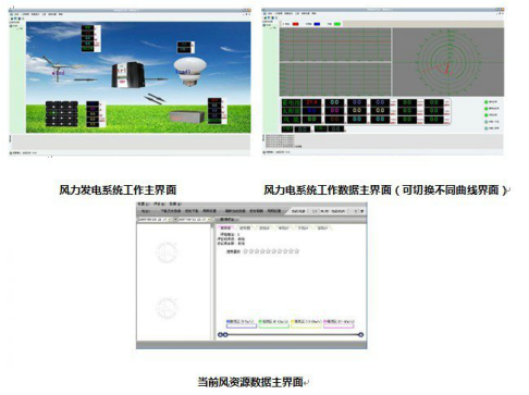 顯示內(nèi)容:蓄電池電壓、風(fēng)機(jī)電壓、光伏電壓、風(fēng)機(jī)電流、光伏電流、風(fēng)機(jī)功率、光伏功率,能量模擬圖,當(dāng)前風(fēng)速(米/秒),當(dāng)前風(fēng)向(度),當(dāng)前風(fēng)力資源平估。 ?