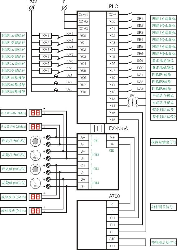 KM5:控制3#泵(BUMP3)工頻運行KM6:控制3#泵(BUMP3)變頻運行