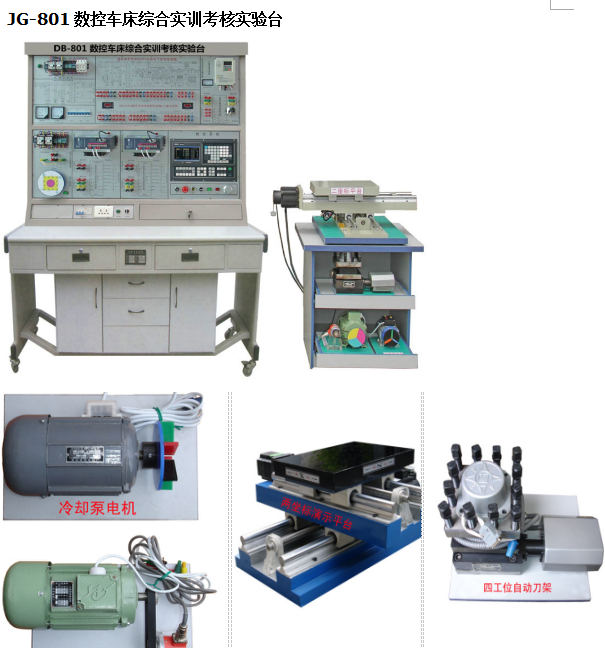 簡介:JG -801數(shù)控車床綜合實訓(xùn)考核實驗臺是根據(jù)《中華人民共和國教育行業(yè)標(biāo)準(zhǔn)(數(shù)控技術(shù)應(yīng)用專業(yè)儀器設(shè)備配備標(biāo)準(zhǔn))》、教育部“振興21世紀(jì)職業(yè)教育課程改革和教材建設(shè)規(guī)劃”、“緊缺人才”培訓(xùn)規(guī)劃的教學(xué)要求,結(jié)合生產(chǎn)實際和職業(yè)崗位的技能要求,按照職業(yè)學(xué)校的教學(xué)和實訓(xùn)要求研制和開發(fā)的產(chǎn)品。適合高等職業(yè)學(xué)校、中等職業(yè)學(xué)校的機(jī)電設(shè)備安裝與維修、機(jī)電技術(shù)應(yīng)用、電氣運行與控制、電氣技術(shù)應(yīng)用、數(shù)控技術(shù)應(yīng)用、機(jī)械加工等專業(yè)和非機(jī)電類專業(yè)的必修課程模塊《數(shù)控設(shè)備維修》、《數(shù)控加工技術(shù)》或選修課程模塊、《機(jī)床電路維修》的教學(xué)與實訓(xùn)。還適合職業(yè)培訓(xùn)學(xué)校的安裝、維修電工高級班,安裝、維修電工技師班,安裝、維修電工高級技師班和銑床工中、高級和技師的培訓(xùn)和鑒定。