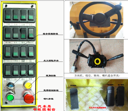 3)具備汽車起重機油門、離合、剎車、方向總成等駕駛操作模塊;