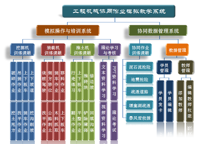 2、實(shí)現(xiàn)推土機(jī)單機(jī)訓(xùn)練、協(xié)同考核、理論考核、視頻教學(xué)等培訓(xùn)功能,并可由教師自主添加理論試卷、視頻錄像、示教圖片等教學(xué)課件。