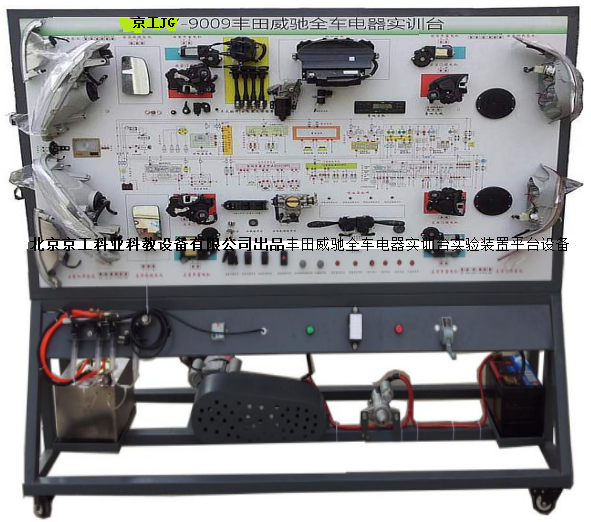 該豐田威馳全車電器實訓(xùn)臺采用豐田威馳整車電器實物為基礎(chǔ),充分展示汽車發(fā)動機防盜系統(tǒng)、儀表系統(tǒng)、燈光系統(tǒng)、雨刮系統(tǒng)、喇叭系統(tǒng)、點火系統(tǒng)、電動車窗系統(tǒng)、電動門鎖、音響系統(tǒng)、起動系統(tǒng)和充電系統(tǒng)等汽車電器各系統(tǒng)的組成結(jié)構(gòu)和工作過程。