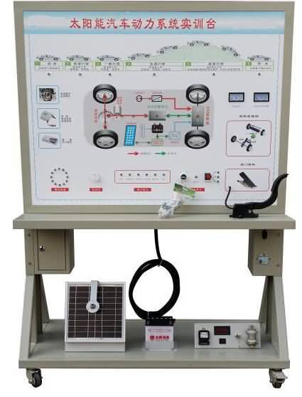 2、面板采用4mm厚耐腐蝕、耐創(chuàng)擊、耐污染、防火、防潮的高級(jí)鋁塑板,表面經(jīng)特殊工藝噴涂底漆處理;面板打印有不褪色的彩色電路圖與工作原理示意圖;學(xué)員可直觀對(duì)照太陽(yáng)能電動(dòng)汽車電動(dòng)動(dòng)力系統(tǒng)與太陽(yáng)能模塊結(jié)構(gòu)原理圖和實(shí)物,認(rèn)識(shí)和分析太陽(yáng)能電動(dòng)汽車系統(tǒng)的工作原理。