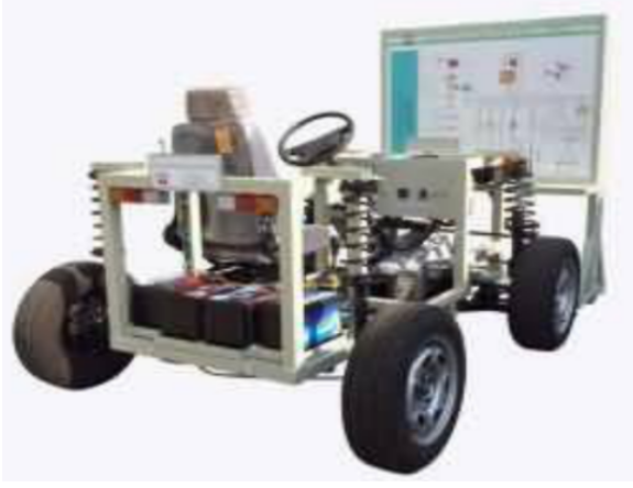 自制電動車控制系統(tǒng)與底盤系統(tǒng)研制而成(地面可真實行駛);采用純電動汽車上全套動力系統(tǒng)部件,整套設(shè)備包括了電動機總成、變速器總成、電動汽車控制器、電池組、儀表總成和操作開關(guān)等真實汽車部件,能清晰展示純電動汽車上動力系統(tǒng)各部件連接關(guān)系和控制系統(tǒng)的控制方式,使學(xué)生對純電動汽車的動力系統(tǒng)有更為直觀的認(rèn)識。