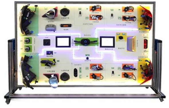 3.裝備結(jié)構(gòu)完整,各器件齊全,全車電器元器件、面板電路原理圖各器件圖形與實(shí)物一一對(duì)應(yīng),并且標(biāo)注名稱、同時(shí)引出相應(yīng)的檢測(cè)端子,可直接在面板上檢測(cè)各傳感器、執(zhí)行器、控制單元管腳的電信號(hào),如電阻、電壓、電流、頻率信號(hào)等,同時(shí)增加,各輔助信號(hào)模擬、傳感器模擬裝置、信號(hào)電壓表、各電器工作指示燈、使全車電器臺(tái)架能夠按照原車功能,全面動(dòng)態(tài)演示各系統(tǒng)工作狀態(tài),適合于理論與實(shí)操一體化教學(xué)需要。