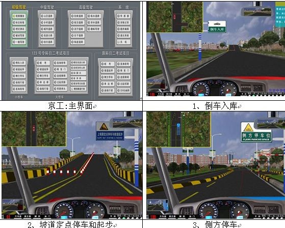 道路場(chǎng)景模擬 :炫目道路: (朝九晚五的太陽)炫目會(huì)車,炫目駕駛鄉(xiāng)村道路等 。泥濘道路: 泥濘洼地道路駕駛 ( 方向、制動(dòng)、驅(qū)動(dòng)有打滑滯后感 ) 場(chǎng)景模型取鄉(xiāng)村道路,道路變?yōu)槟酀魻顟B(tài)。 石子路面: 汽車在其上面行駛,遇到剎車時(shí)剎不住車,還可汽車還在繼續(xù)滑動(dòng),有時(shí)還會(huì)斜向滑行,極難控制感,汽車在石子路面里滑動(dòng)。 涉水道路 : 涉水駕駛汽車有水流沖力對(duì)車輛的前進(jìn)阻力感光及側(cè)滑感,輪胎與水下的路壓力減小,驅(qū)動(dòng)力受到限制,使行駛受阻感覺。 專項(xiàng)訓(xùn)練: 要附合交通部要求。 系統(tǒng)評(píng)分:每次駕駛結(jié)束 , 系統(tǒng)自動(dòng)評(píng)分。 山區(qū)到路: 突出坡多、彎多、凹凸路面、駕駛環(huán)境復(fù)雜、有側(cè)風(fēng)、有陡坡長(zhǎng)坡、溜坡、側(cè)滑(有語音提示)。 鄉(xiāng)村道路: 含鐵道路口;加油站,公交車站、單行道、農(nóng)田道口等; 城市道路: 含公交站臺(tái),高架立交橋、公交專用道、十字路口、丁字路口、環(huán)島、隧道、單行道、雙黃線、加油站、商場(chǎng)百貨門口斑馬線天橋,學(xué)校門口及紅綠燈,行人、非機(jī)動(dòng)車亂穿馬路及非機(jī)動(dòng)車等。 高速公路: 包括收費(fèi)站(入、停、出、)服務(wù)區(qū)、緊急帶、匝道行駛、超車道、行車道、隧道、立交橋、交通標(biāo)牌標(biāo)線。 危險(xiǎn)場(chǎng)景: 視線不清的交通情況下,超車后突然切入他人道引起被超車輛緊急制動(dòng)、自行車、行人突然橫穿馬路,路面維修,障礙物繞行等 危險(xiǎn)場(chǎng)景、