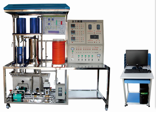 , , 過程控制包括一組有機玻璃三(兩)容水箱,每個水箱裝有液位傳感變送器;同時具有兩路供水系統(tǒng),一路由進口動力水泵、調(diào)節(jié)閥、電磁流量計組成,另一路由變頻器、進口動力水泵、渦輪流量計組成,通過閥門切換,任何一組供水可以到達任何一個水箱。另外,為實現(xiàn)溫度控制,該實驗裝置專門設(shè)計了一只由帶夾套鍋爐、防干燒裝置組成的常壓電加熱鍋爐。鍋爐分內(nèi)膽和夾套兩層,內(nèi)膽由電加熱器提供熱源,由一路供水系統(tǒng)提供水源,鍋爐內(nèi)膽裝有防干燒裝置來確保設(shè)備安全;夾套由一路供水系統(tǒng)提供冷卻水。通過改變電加熱器的加熱功率或冷卻水 / 待加熱水的流量來影響內(nèi)膽水溫和夾套水溫。鍋爐內(nèi)膽和夾套均安裝有熱電阻測溫元件。