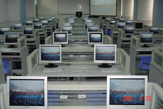 電子商務(wù)實驗室 配有 45 臺學(xué)生機,一臺教師機,接供網(wǎng)絡(luò)連接。
