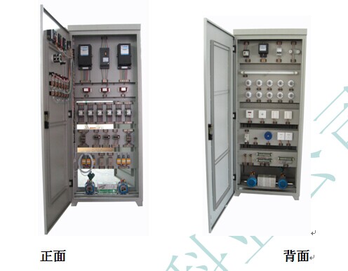 技術(shù)訓(xùn)練柜按標(biāo)準(zhǔn)電氣控制柜設(shè)計(jì)制 ( 規(guī)格: 700x450x1 700mm ) ,充分利用雙面空間位置,柜內(nèi)裝有完成各種照明電路所需的單機(jī)電度表、日光燈、白熾燈、單聯(lián)開關(guān)、雙聯(lián)開關(guān)、插座、感應(yīng)開關(guān)、漏電開關(guān)等,以及電氣控制所需要的各種低壓電器,如漏電斷路器、熔斷器、電流互感器、交流接觸器、時(shí)間繼電器、中間繼電器、行程開關(guān)、按鈕開關(guān)、信號燈、轉(zhuǎn)換開關(guān)、電壓表、電流表功率表以及單三相電度表等。為了延長電路的使用壽命,各電器的接點(diǎn)都先與接線端子相連,再讓學(xué)生在接線端子上接線,以求經(jīng)久耐用。技訓(xùn)柜還配備三臺附屬電機(jī).通過該電動(dòng)機(jī)支持可作各種實(shí)驗(yàn)。