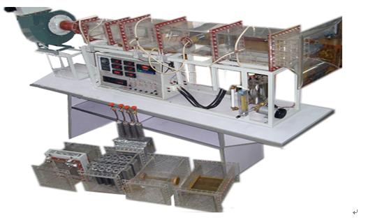風(fēng)機(jī),自動(dòng)調(diào)節(jié)風(fēng)門,組合式有機(jī)玻璃風(fēng)洞,有機(jī)玻璃實(shí)驗(yàn)管段,有機(jī)玻璃叉排、順排實(shí)驗(yàn)段,旋轉(zhuǎn)圓柱試件,紫銅平板試件,穩(wěn)壓電源配電位器調(diào)節(jié)加熱功率,電流表,電壓表,畢托管及差壓傳感器, PT100 熱電阻測(cè)溫,巡檢儀顯示溫度、阻力、流量,不銹鋼臺(tái)架等。