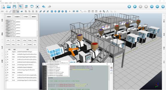 ( 7 )提供強(qiáng)大的 API 功能支持,允許開展大量機(jī)器人機(jī)構(gòu)的自動化應(yīng)用?蛇M(jìn)行仿真和應(yīng)用于程序機(jī)器人取放物體和應(yīng)用于復(fù)雜的多機(jī)器人同步運(yùn)動等;