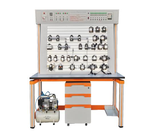 該實(shí)驗(yàn)臺(tái)是根據(jù)《液壓氣動(dòng)傳動(dòng)技術(shù)與實(shí)訓(xùn)》、《氣動(dòng)控制技術(shù)》等通用教材設(shè)計(jì)而成,適用于機(jī)械類、機(jī)電類本科生課程實(shí)驗(yàn)和畢業(yè)設(shè)計(jì)(論文)。采用可編程控制器( PLC )和工業(yè)氣動(dòng)元件、執(zhí)行模塊為一體,除可進(jìn)行常規(guī)的氣動(dòng)基本控制回路實(shí)驗(yàn)外,還可以進(jìn)行氣動(dòng) - 電氣控制回路應(yīng)用實(shí)驗(yàn)、氣動(dòng) -PLC 控制回路等氣動(dòng)技術(shù)課程設(shè)計(jì)。