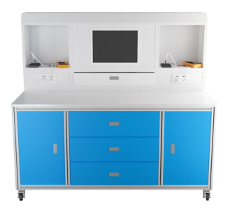工作臺(tái): 桌身采用優(yōu)質(zhì)鋁型材做骨架,整機(jī)既堅(jiān)固耐用,美觀大方。桌面采用 25mm 厚高密度纖維板,外貼防火板, PVC 截面封邊,桌面具有耐磨、耐熱、耐污、耐火、耐菌、防霉、抗靜電及易清潔等特點(diǎn)。工作臺(tái)設(shè)有防靜電配套裝置,桌面上方有實(shí)訓(xùn)屏、高檔條形 LED 照明。工作臺(tái)下裝帶剎車(chē)的萬(wàn)向輪,可以隨意固定和移動(dòng),設(shè)計(jì)有抽屜,抽屜內(nèi)部使用分隔條分隔成各種大小不同空間,實(shí)訓(xùn)電路板、元器件、工具、耗材均可放在隔間內(nèi),拉開(kāi)抽屜,各種電子元件分類(lèi)整齊、一目了然。