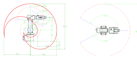 最大運動半徑 :702mm