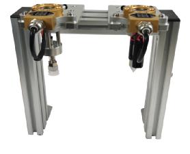 該模塊設(shè)置了兩組末端快換夾具,可供使用者練習精密的工業(yè)機器人快換夾具更換操作,學習末端快換夾具的機械、電路及氣路連接原理。
