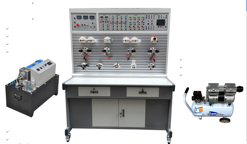 利用此套實訓(xùn)設(shè)備既可分別獨(dú)立地進(jìn)行氣動控制、液壓控制相應(yīng)的基本回路及其應(yīng)用實訓(xùn),也可綜合地進(jìn)行相互配合的實訓(xùn):如實現(xiàn)氣-電控制,氣-液控制,電-液控制,以及氣-電-液綜合控制等。