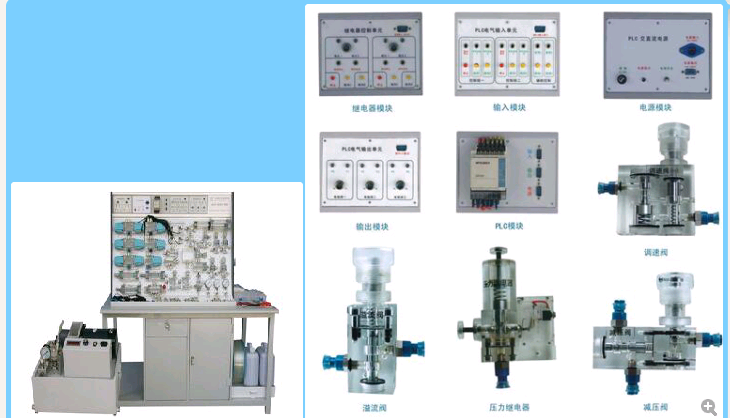 液實驗元件均為透明有機材料制成,透明直觀。便于了解掌握幾十種常用液壓元件的結(jié)構(gòu)、性能及用途。掌握幾十種基本實驗回路的工作過程及原理。實驗時,組裝實驗回路快捷、方便。同時,配備獨立的繼電器控制單元進行電氣控制,簡單實用。通過與PLC比較,可以加深對PLC可編程序控制器的了解及掌握。
